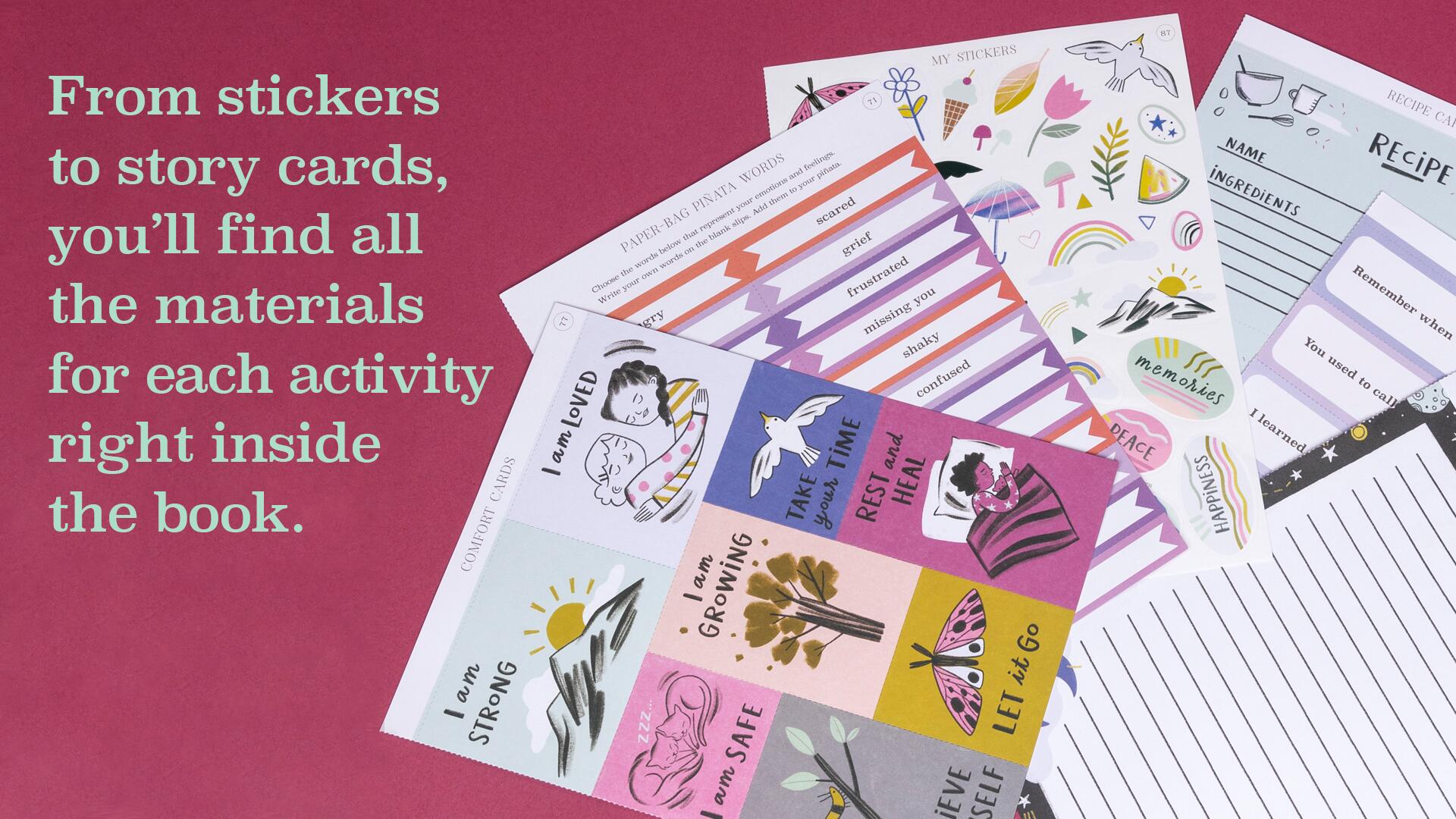 Help children deal with the loss of someone special through activities and creative art therapy projects. Includes stickers, coloring sheets, keepsakes, and comfort cards.