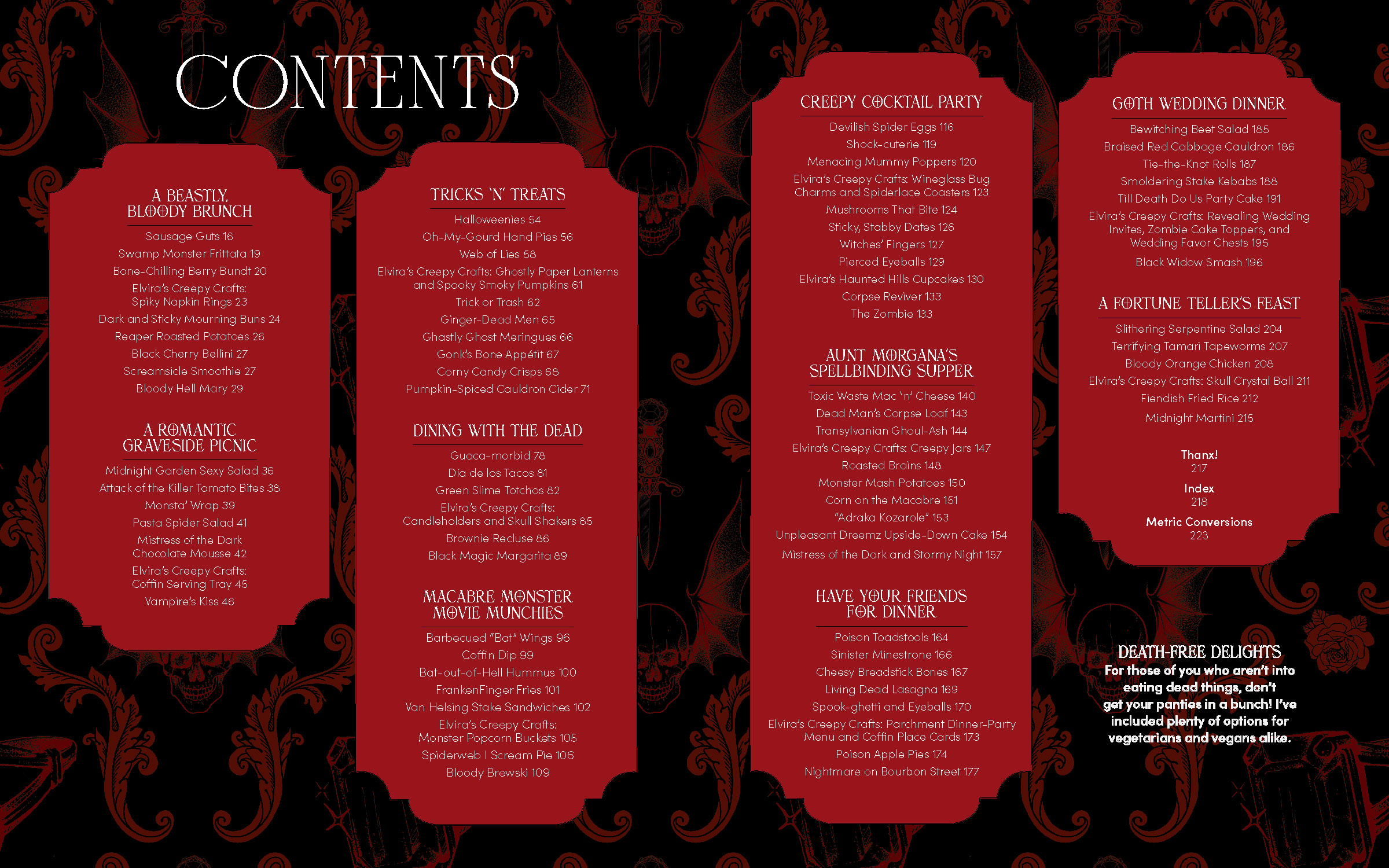 Hello darling, it’s me, Elvira—the afterlife of the party—here to bring the “Hell” to your next Hell-raising gathering! Ready to unleash your inner party monster? Well, I’m here to prove that the devil is in the details. Shock your fiends with sinister snacks, demonically delicious dishes, and cocktails so wickedly good they’ll make your head spin! But this isn’t just a cookbook—think of it as your Necronomicom of party planning. Between these pages lies everything you’ll need to make your next get-together a graveyard smash!