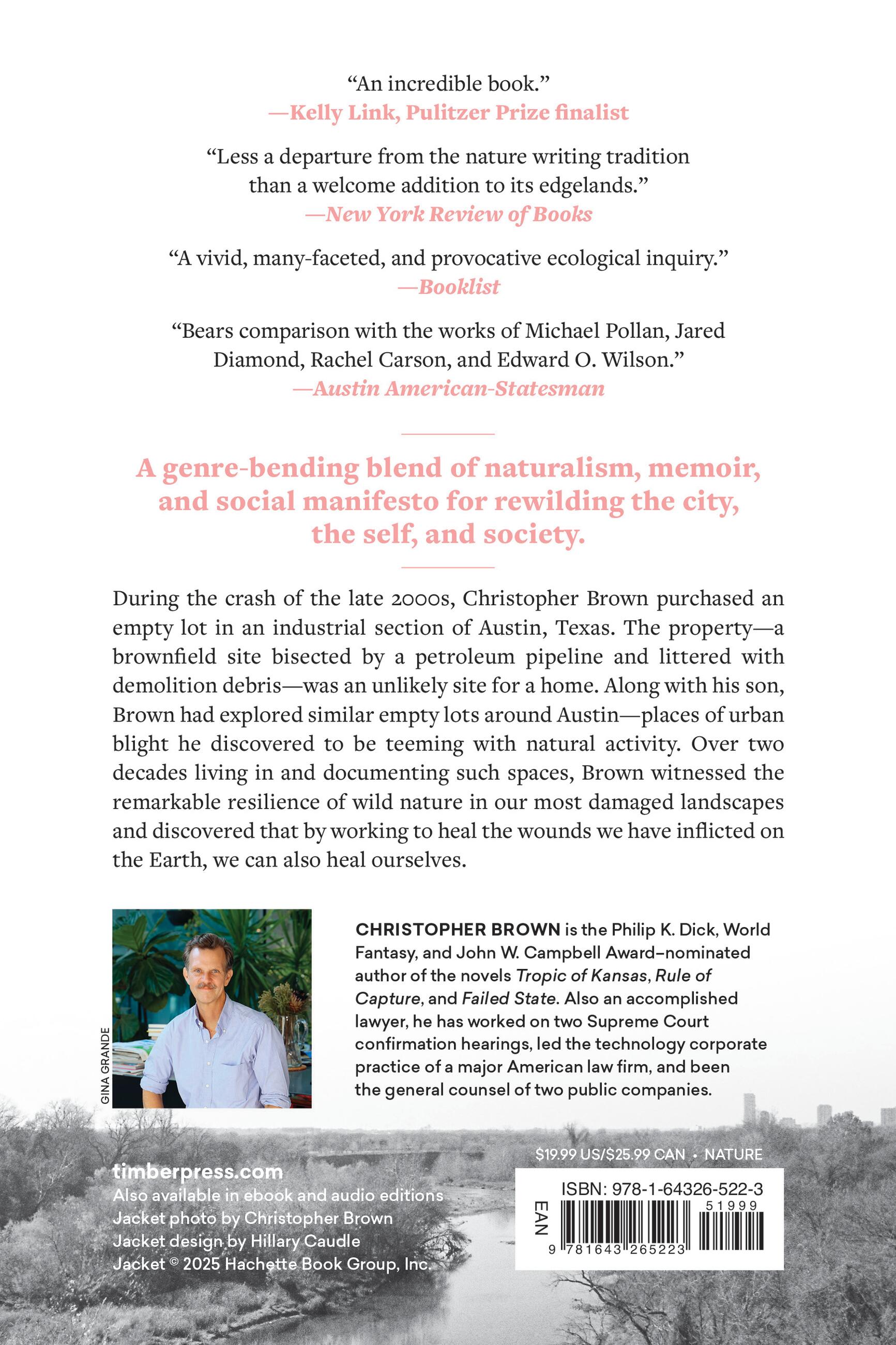 "Too often, what we call ‘nature writing’ is nostalgic for what never was. Thank goodness for Christopher Brown, who sees the wonder in what is and what might be. A Natural History of Empty Lots is the nature writing we need now."Michelle Nijhuis, author of Beloved Beasts: Fighting for Life in an Age of Extinction