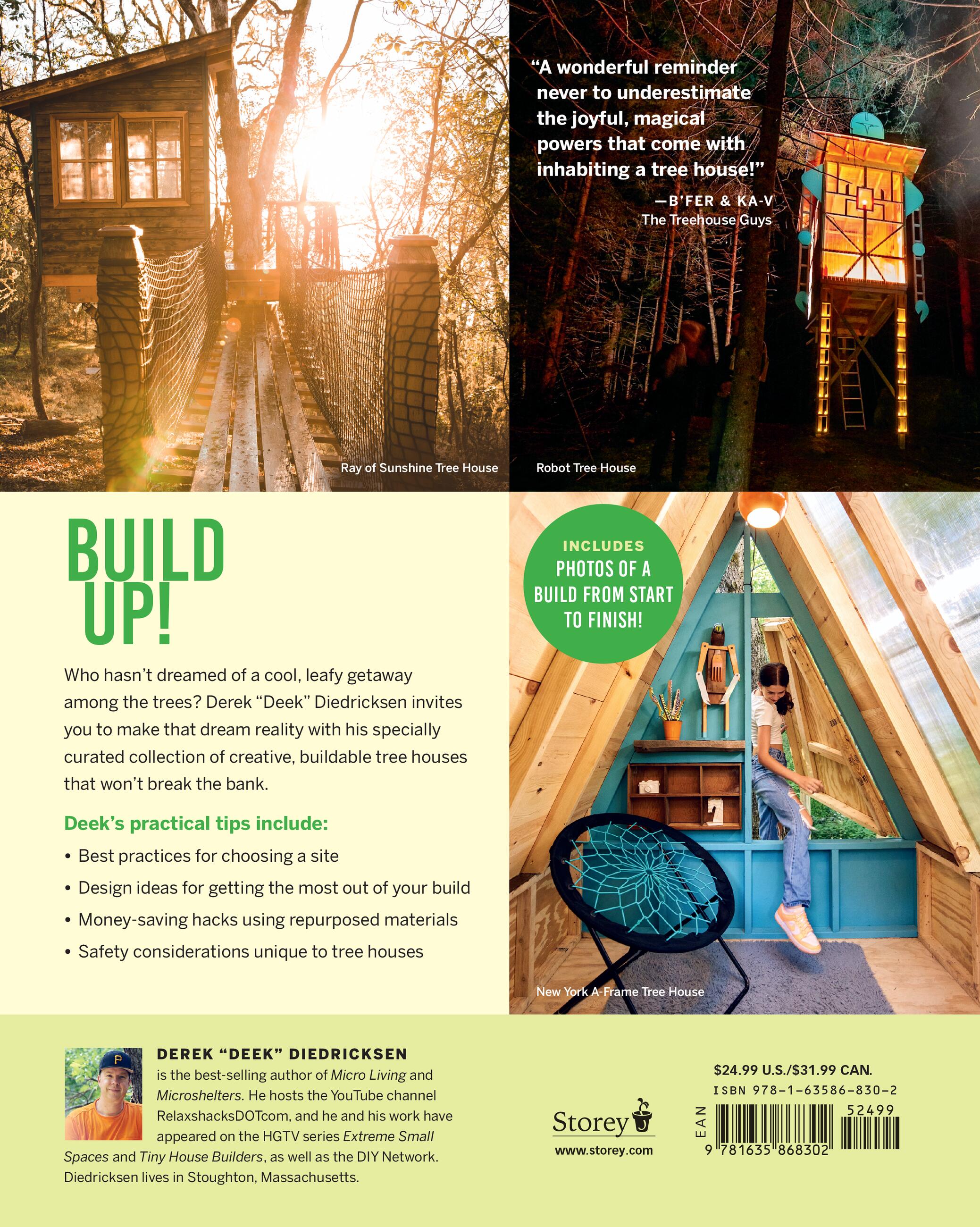 For those eager to start their own projects, Diedricksen leads the reader through the most important nuts & bolts of tree house building and offers tips and suggestions throughout. The book includes step-by-step photographs of a basic sample build.