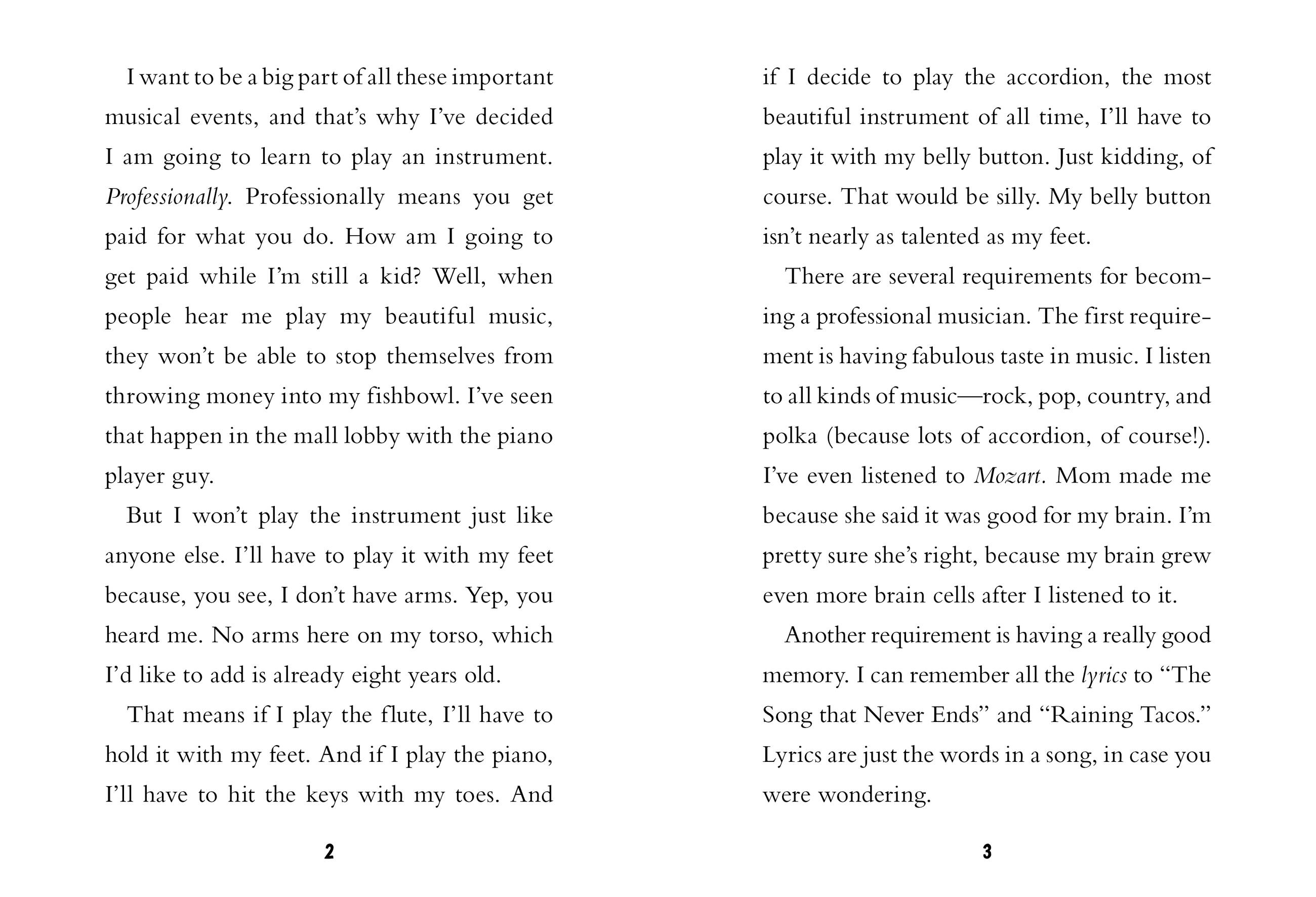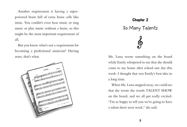 Third-grader Aven Green is a real professional musician! She just needs to choose what instrument to play. When she decides to try the piano, Aven is disappointed when she can’t master Mozart in one whole day. To pick up Aven’s beat, her parents take her for a four-hour drive to see someone just like her play the guitar. With new inspiration and a special gift from her great-grandma, Aven is ready to take on the school talent show. Will she be ready in time? Or will she blow her big chance?