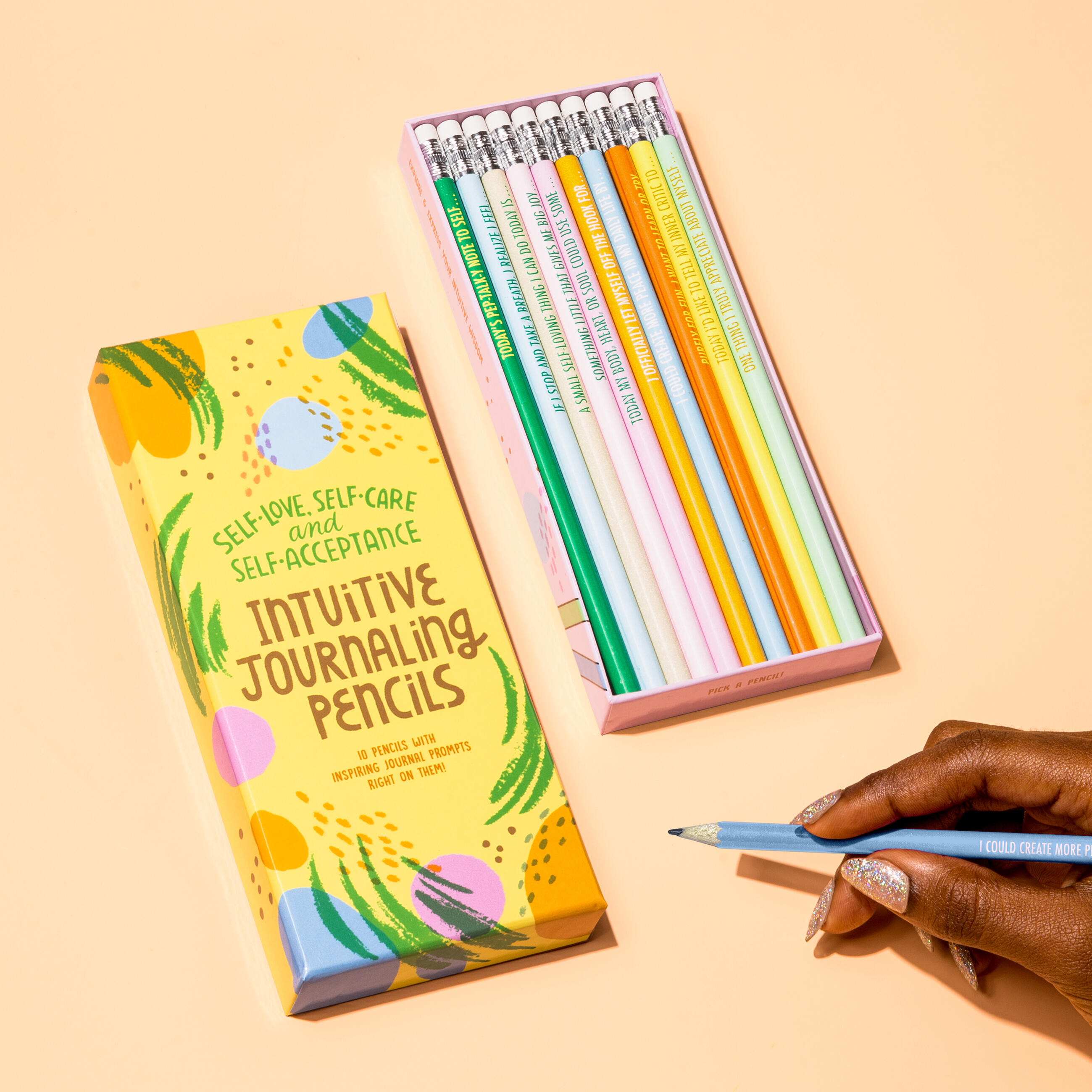Self-Love, Self-Care and Self-Acceptance Pencil Set, 10 Pencils with Journal Prompts
