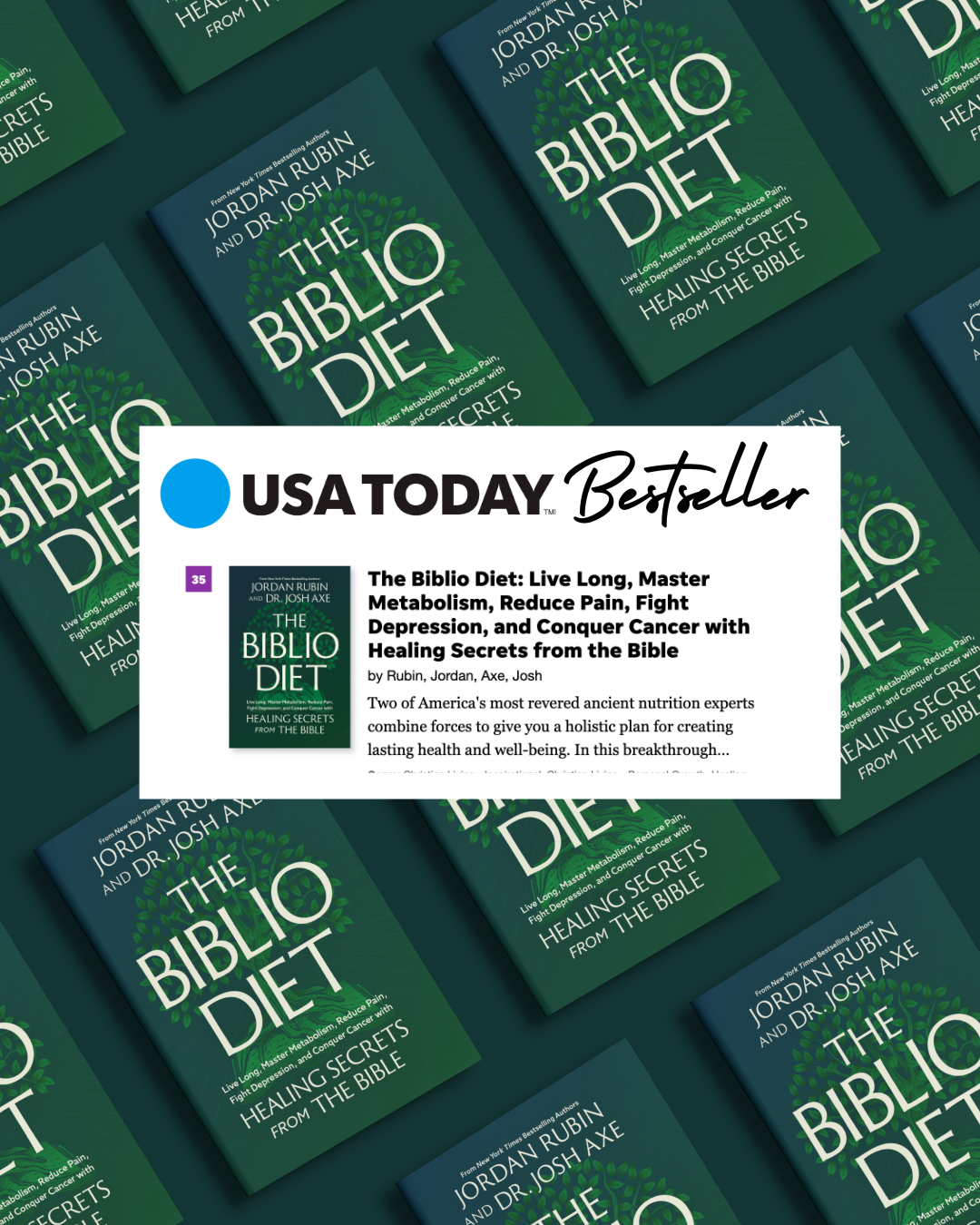 “The Biblio Diet is a bold return to ancient wisdom rooted in modern science. It’s not just a diet—it’s a divine blueprint for healing, purpose, and long life. Jordan and Josh are leading a health revolution from the soil to the soul—and this book is your invitation.”