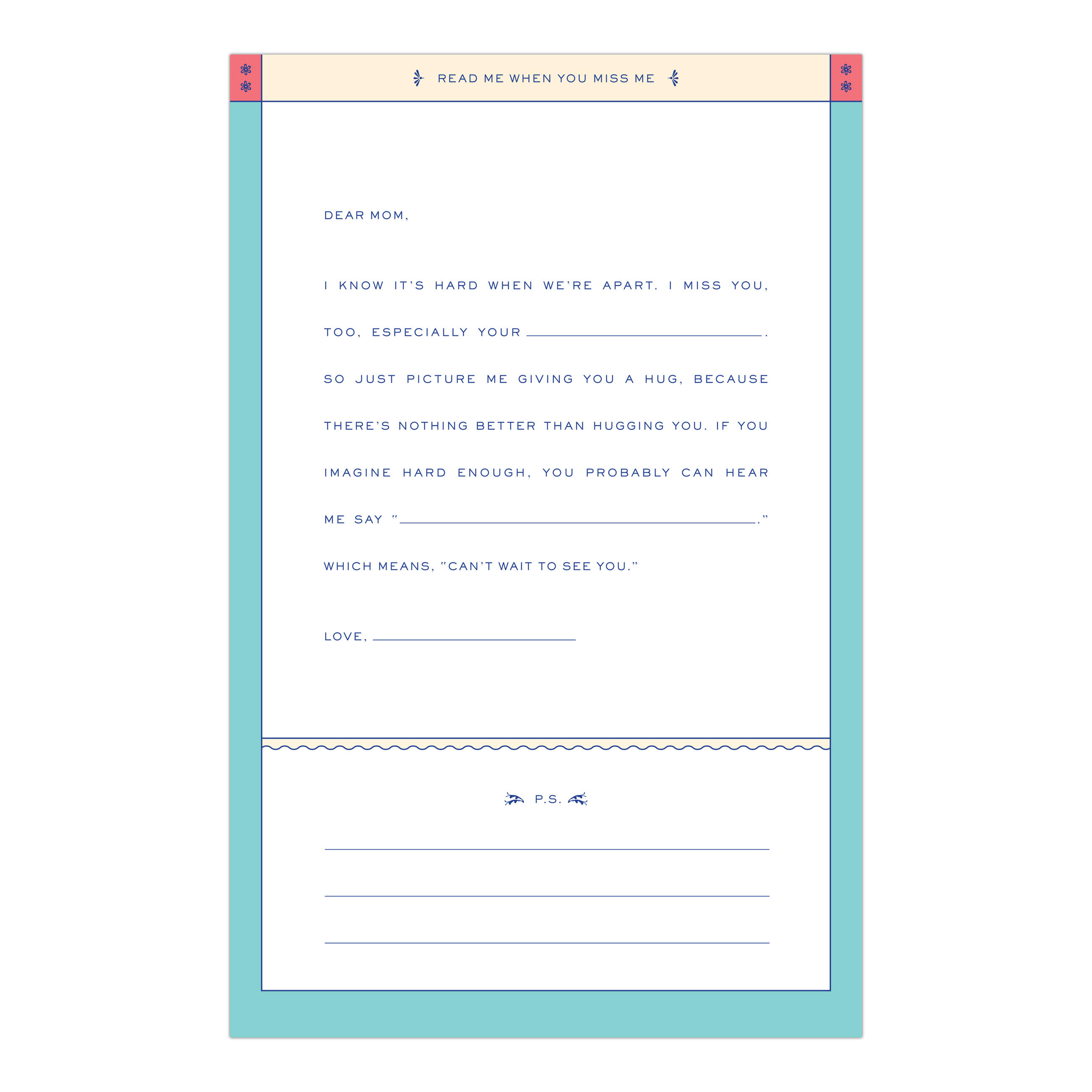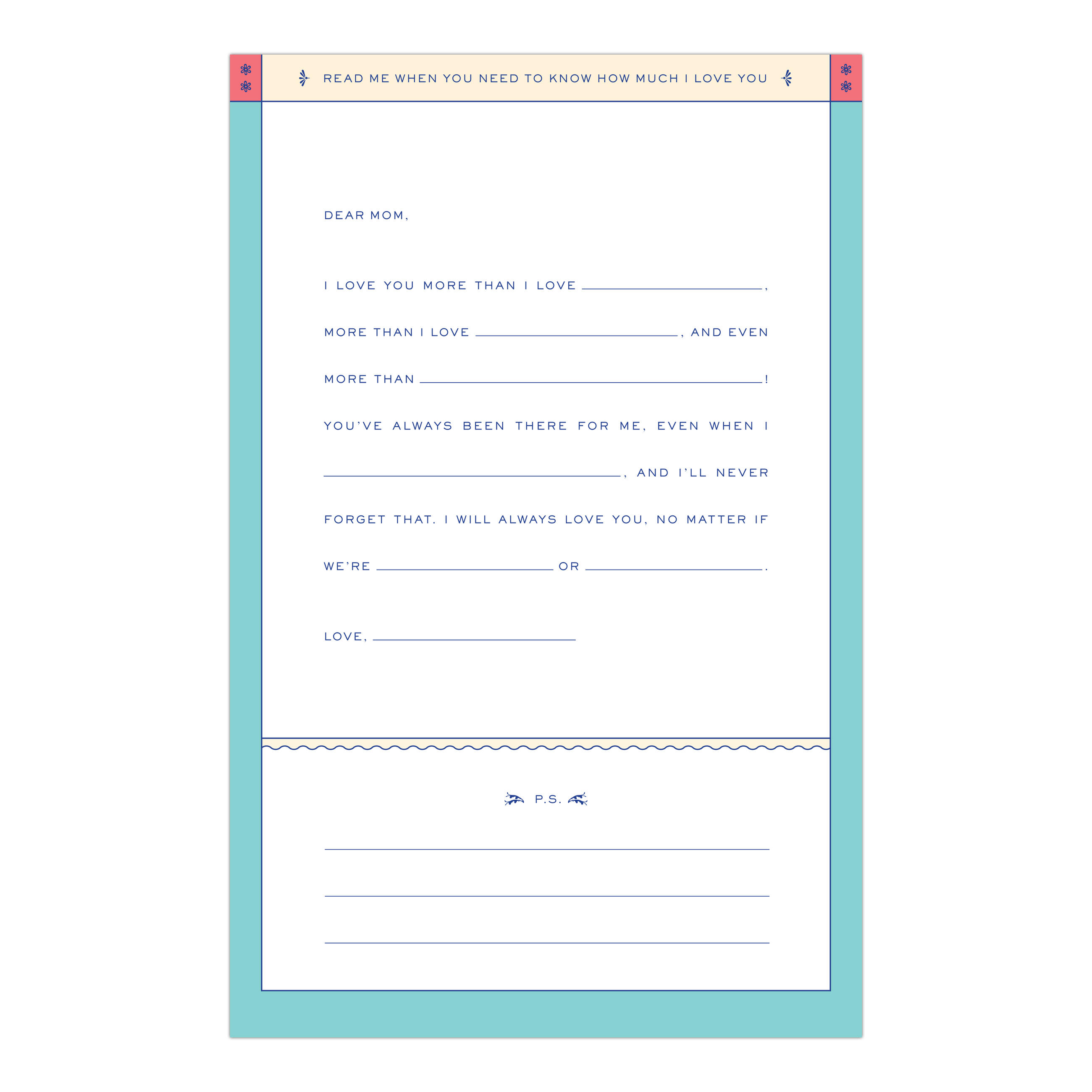 Create a treasure trove of letters for your favorite mom. Simply fill in the blanks on eight situation-specific missives, seal them in their corresponding envelopes, and present the whole package in its keepsake box. The letters can then be opened at just the right moment in the future to provide your personal thoughts and encouragement.