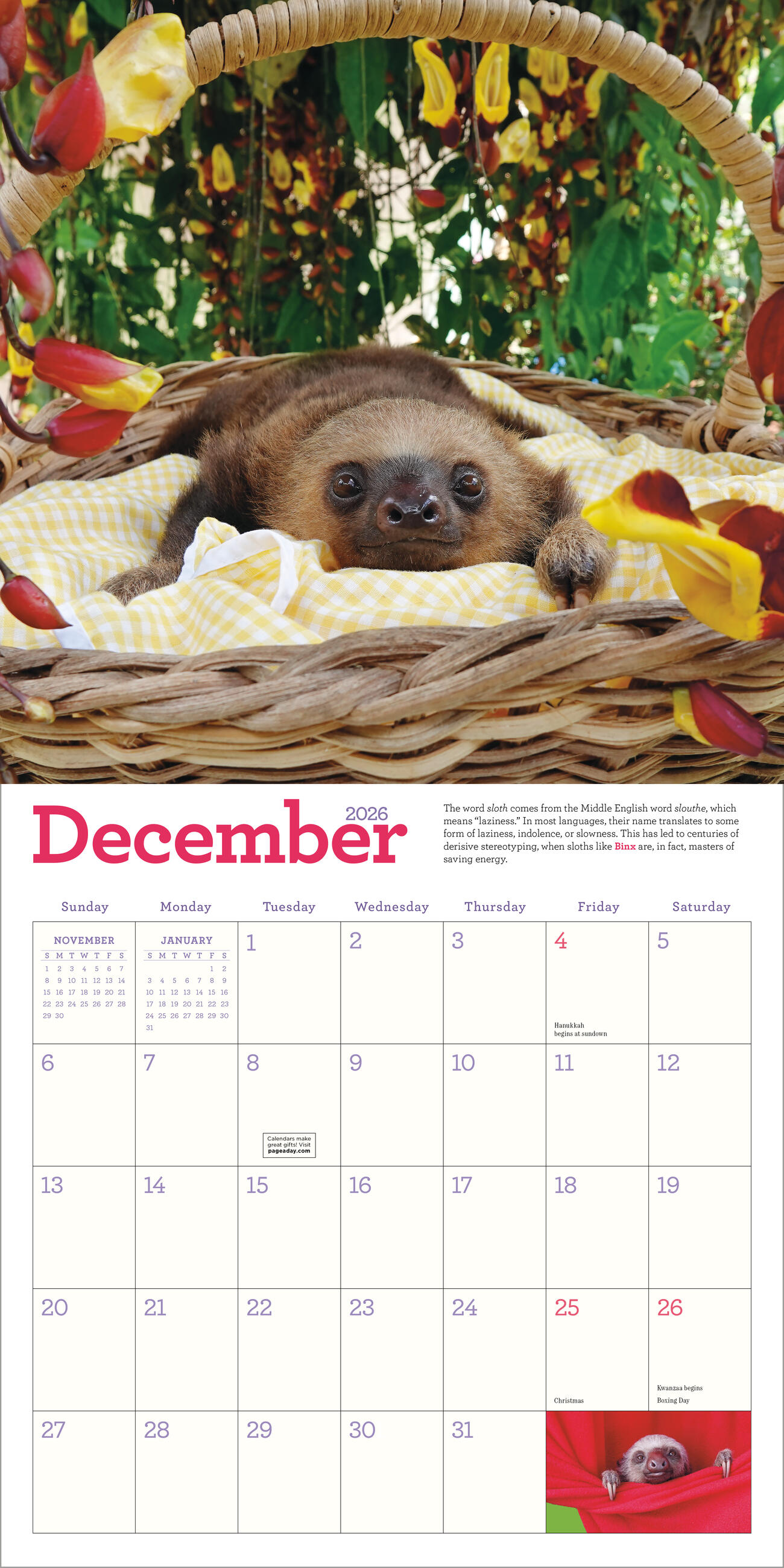 - GREAT GIFT: This bestselling calendar is perfect for the sloth lover in your life or anyone who might need a reminder to take it slow throughout the year.