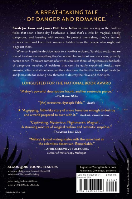 Sarah Jac Crow and James Holt have fallen in love working in the endless fields that span a bone-dry Southwest in the near future—a land that’s a little bit magical, deeply dangerous, and bursting with secrets. To protect themselves, they’ve learned to work hard and, above all, keep their love hidden from the people who might use it against them. Then, just when Sarah Jac and James have settled in and begun saving money for the home they dream of near the coast, a horrible accident sends them on the run. With no choice but to start over on a new, possibly cursed ranch, the delicate balance of their lives begins to give way—and they may have to pay a frighteningly high price for their love.