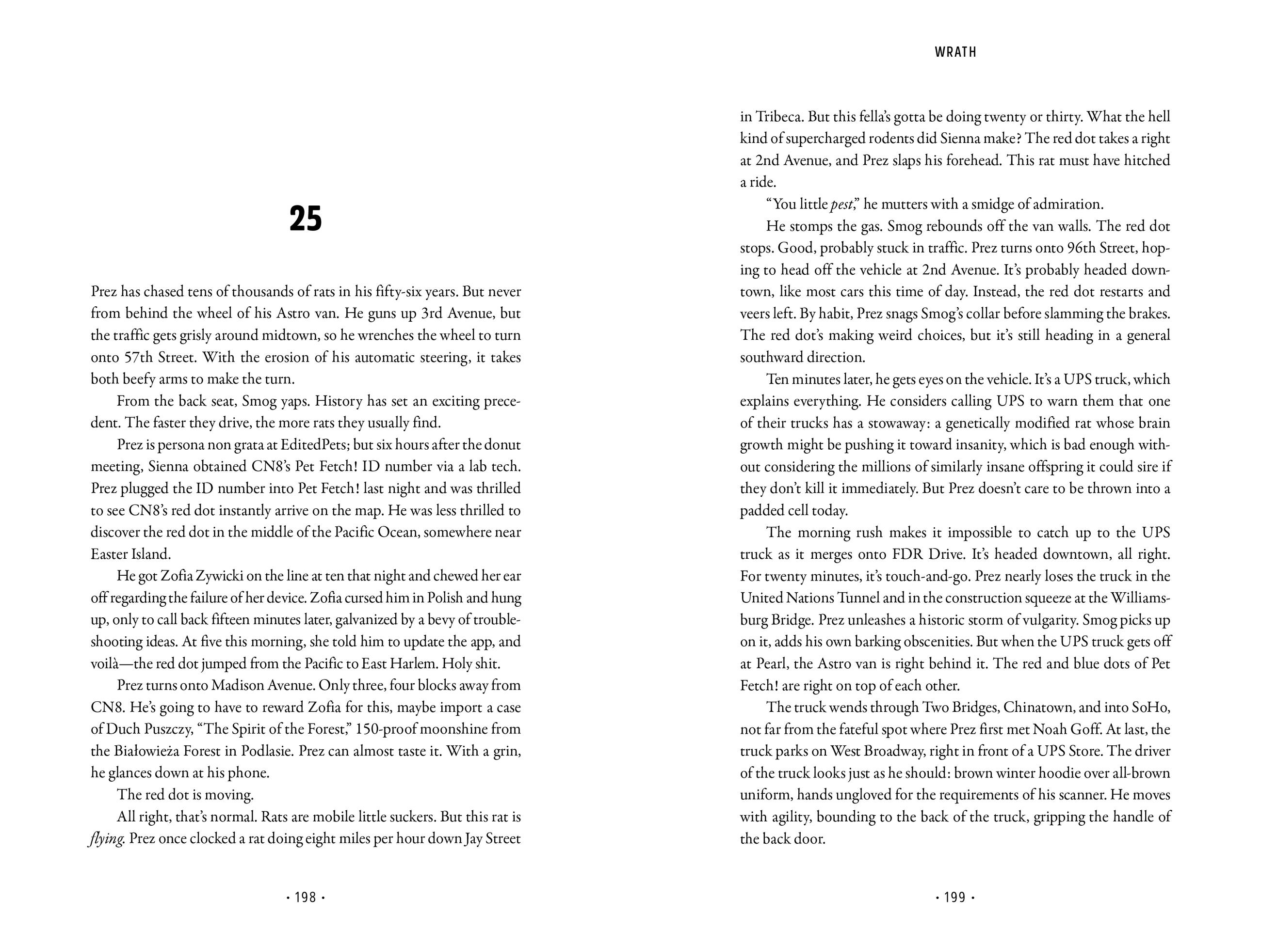The key to Sammy’s capture and humanity’s salvation may be ten-year-old Dallas Underhill, whom Sammy temporarily adopts. Sammy himself is scientifically enhanced—with a cutting-edge cochlear implant—by which he discovers Sammy possesses superior skills that allow him to communicate with and direct other rats who have not been modified. But while Dallas and Sammy bond, time is running out for humankind: once Sammy sires his progeny, the exponential proliferation of his kind could spell the end of the world.