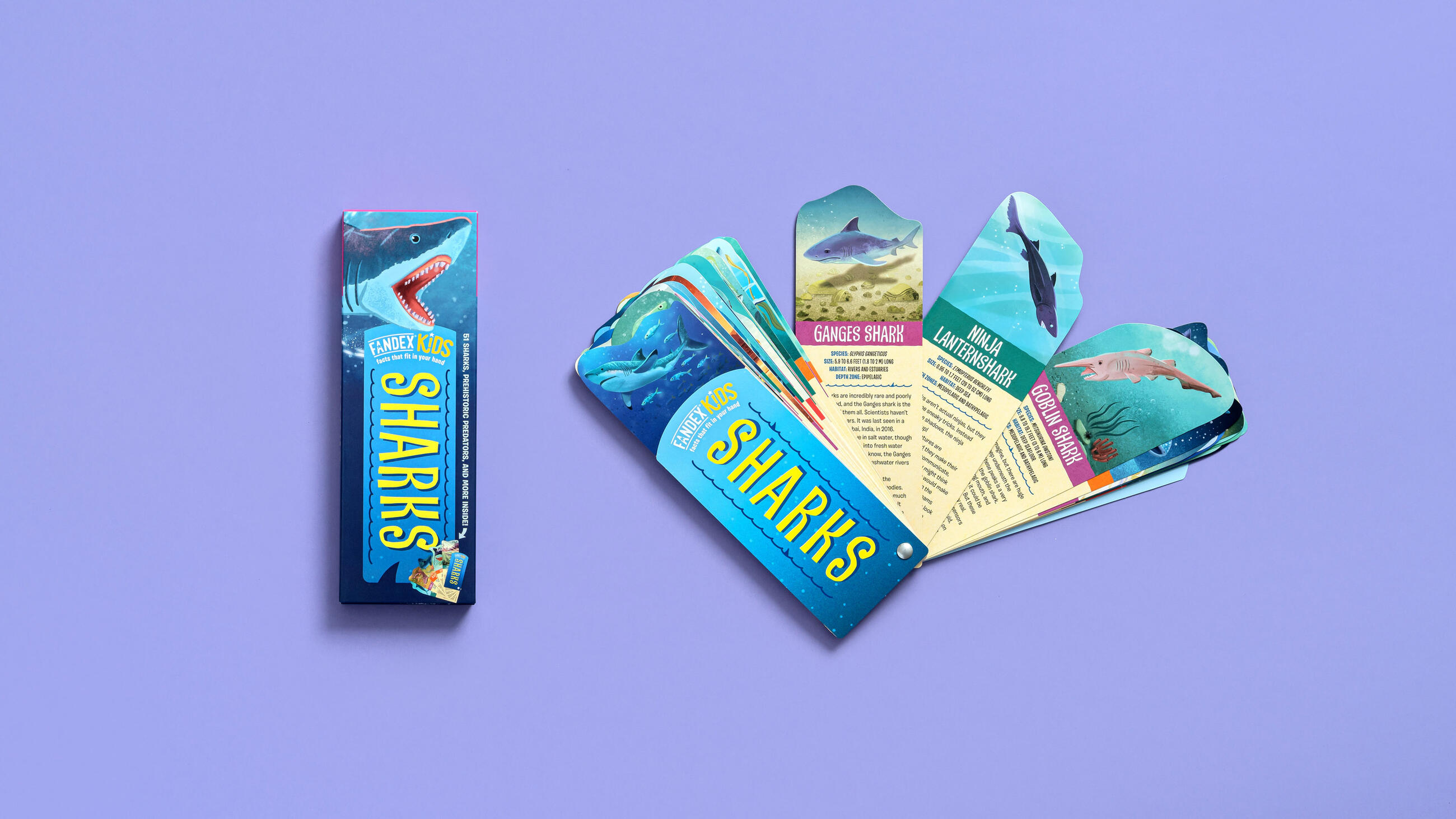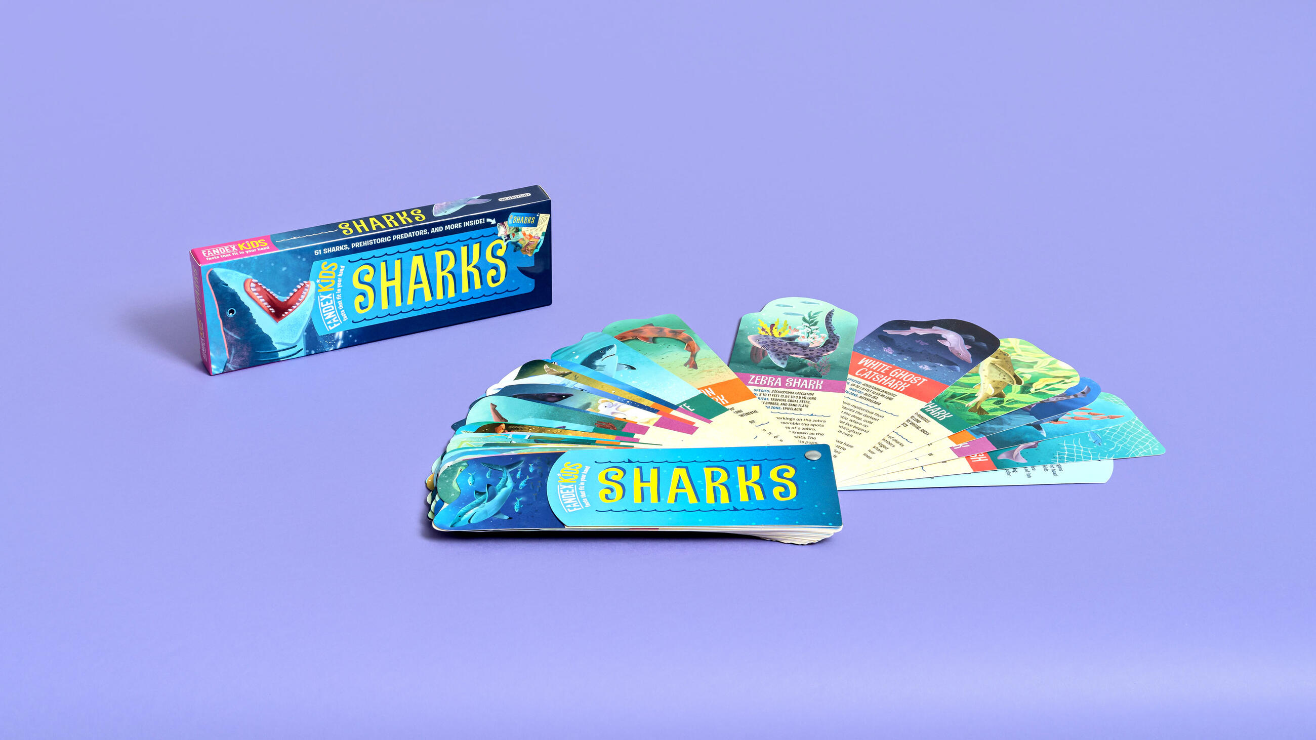 Fandex Kids: Sharks includes 53 full-color fact cards featuring incredible illustrations of sharks, ocean creatures, habitats, and more.