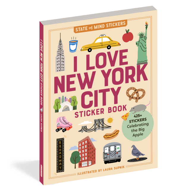 I Love New York City Sticker Book is a fun and colorful visual celebration of the Big Apple. Filled with 300+ stickers illustrated by local artist Laura Supnik, the book includes everything from yellow taxi cabs, the shining lights of Broadway, and our lovable pigeon and rat friends to all of the city’s boroughs and best-known landmarks (think Empire State Building, the Brooklyn Bridge, Staten Island Ferry, the Unisphere).